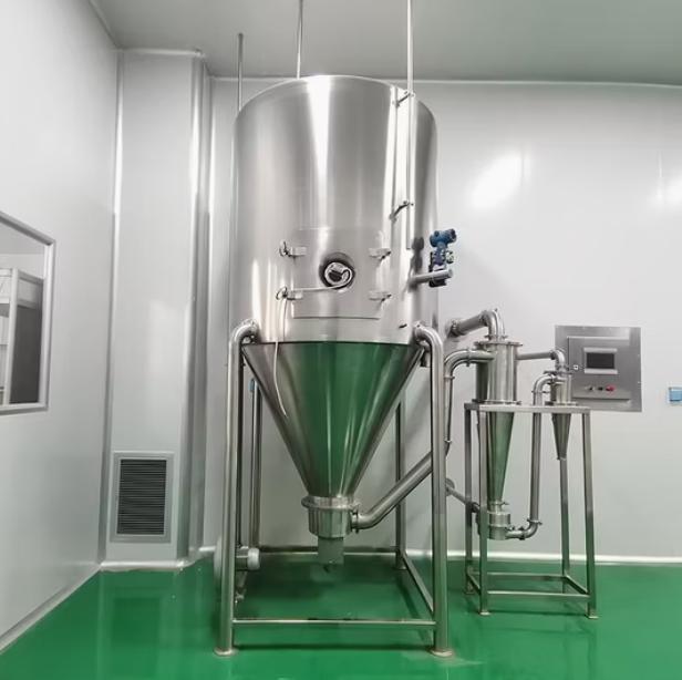 2. ساخت اتمسفر گاز بی اثر: قبل از شروع برج خشک کن، نیتروژن (یا دی اکسید کربن) برای جایگزینی هوای داخل برج وارد می شود که باعث کاهش محتوای اکسیژن به زیر 5٪ (بسیار کمتر از حد انفجار LPG)، ایجاد یک اتمسفر محافظ بی اثر پایدار و از بین بردن خطر انفجار در منبع می شود. 3. اتمیزه کردن با فشار بالا و خشک کردن فوری: پس از ورود به دستگاه اتمایزر ضد انفجار در بالای برج، مواد به صورت قطرات ریز 5-40 میکرومتر پراکنده می شوند و با جریان هوای گرم بی اثر جریان تماسی ایجاد می کنند. رطوبت و مقادیر کمی از اجزای فرار LPG در قطرات فورا تبخیر می شود. فرآیند خشک کردن در یک "محیط بی اثر با دمای پایین" (دمای سطح مواد در 40-70 درجه سانتیگراد کنترل می شود) تکمیل می شود و از تجزیه یا سوختن اجزای LPG به دلیل دماهای بالا جلوگیری می کند.
